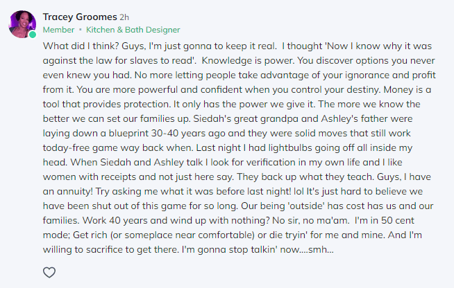 I would tell someone considering joining that this program will give you the tools, the support, and the mindset to transform your financial life."